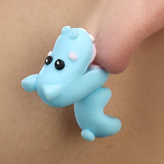 耳たぶにカバが噛みついているように見えるとっても可愛いピアスです♪